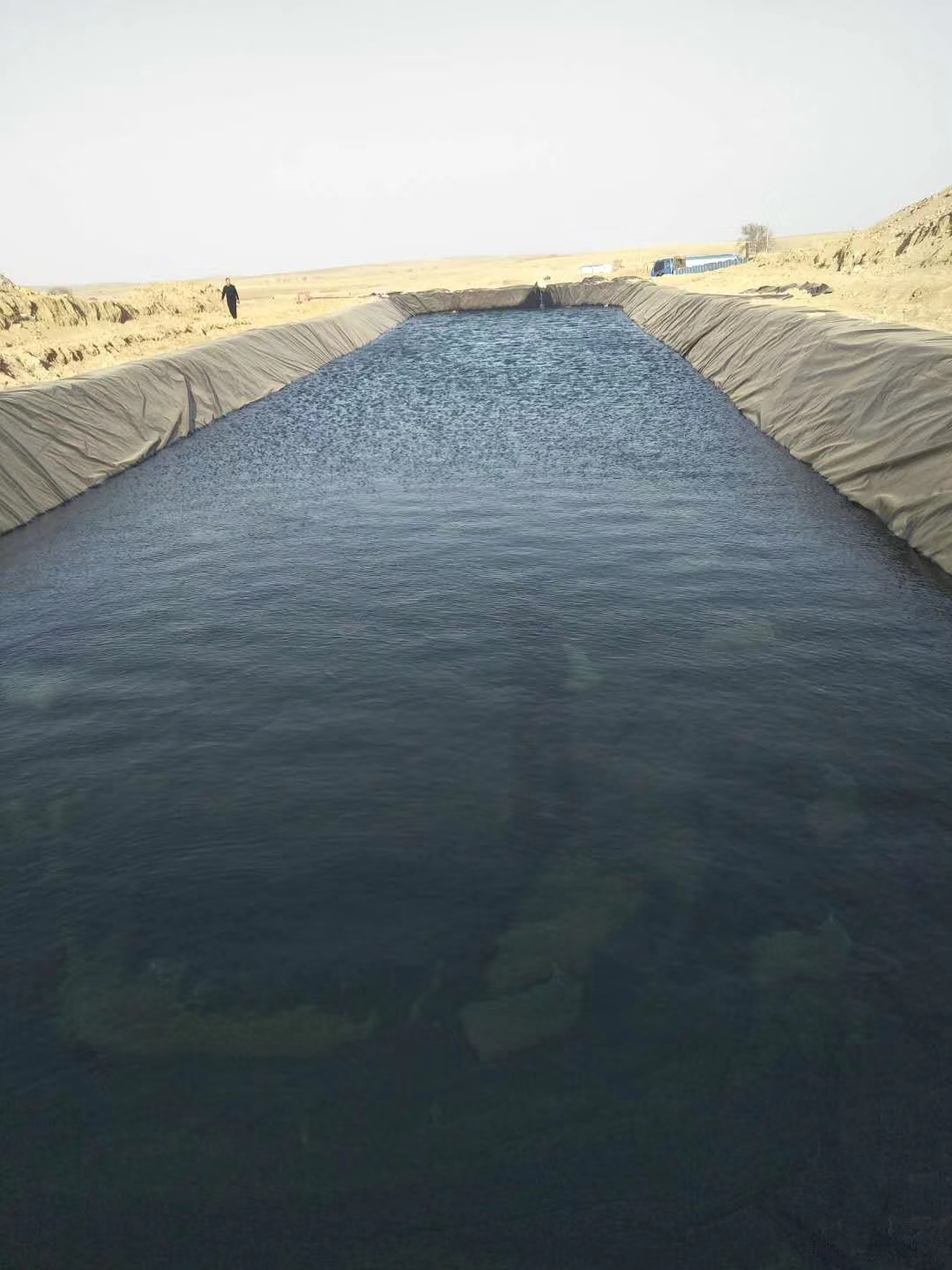 HDPE防渗膜、麻豆视频APP在线下载应铺设平顺,边坡上的接缝须与坡面的坡向平行,场底横向接缝须距坡脚应大于1.5m,搭接宽度符合设计和规范要求。